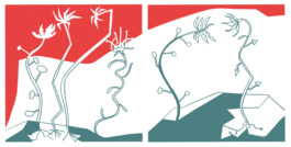 Ein Comic zum Thema Stigmatisierung im Bereich der psychischen Gesundheit. Vier Gespräche mit vier Menschen in einem Beitrag vereint bewusst ohne klare Zuordnung.